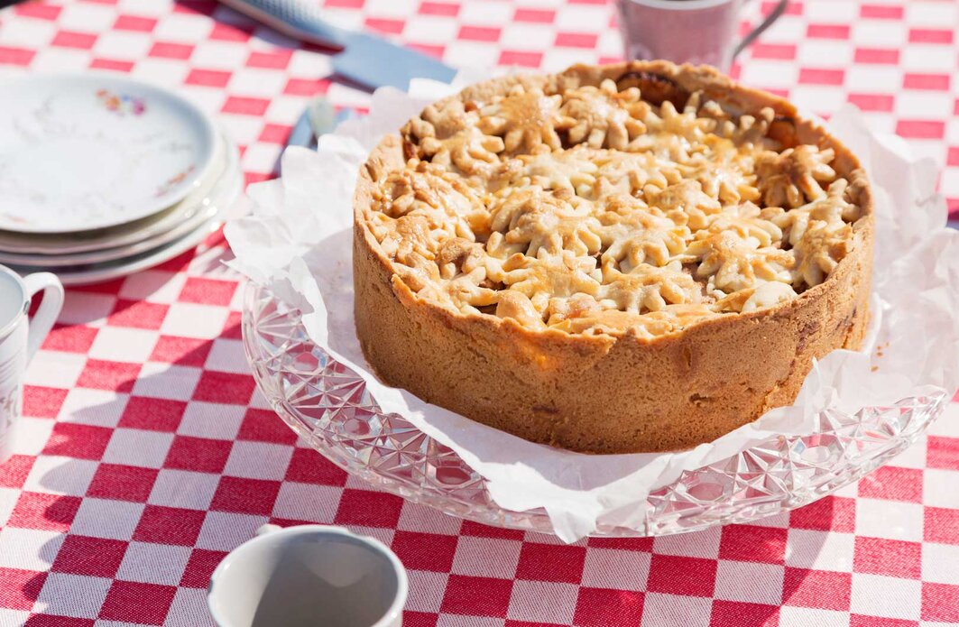 Bak de appeltaart in 60-70 minuten gaar en goudbruin.