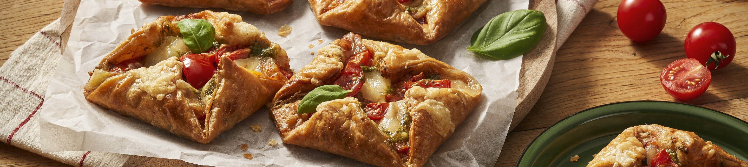 Met bladerdeeg van Koopmans maak je de lekkerste hapjes. Deze heerlijke caprese bladerdeeg hapjes met tomaat, mozzarella, pesto en geraspte kaas zijn binnen een handomdraai gemaakt. Heerijk als snack of voor bij de borrel.