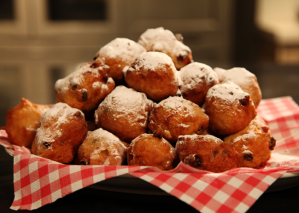 Gevulde oliebollen met gekonfijte sinaasappelschil