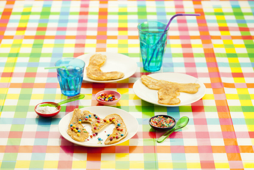 - Versier de pannenkoeken met snoepgoed naar keuze.
