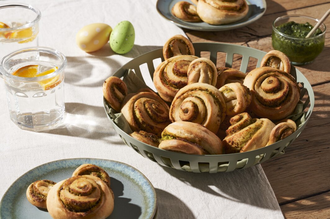 Bak de paashaas pesto broodjes in ongeveer 15 minuten af in de voorverwarmde oven. Ze zijn klaar wanneer de broodjes goudbruin uit de oven komen.