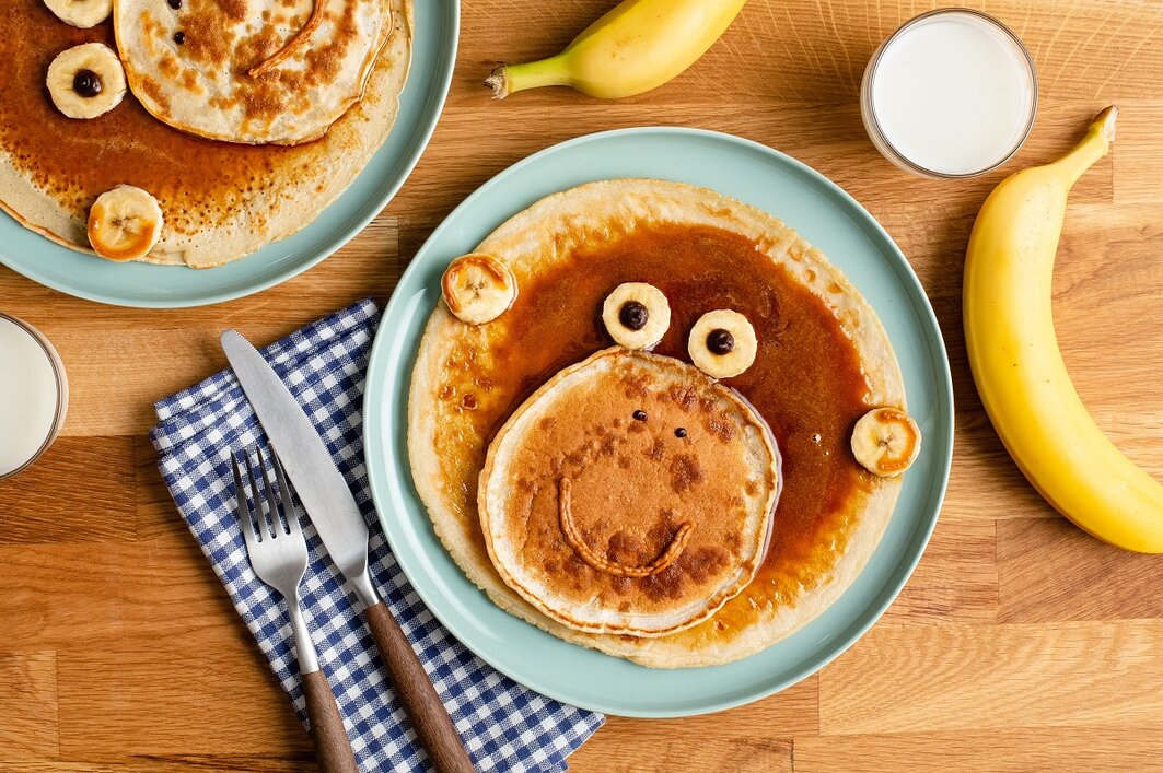 Maak je eigen aapjes pannenkoeken met stroop en banaan!