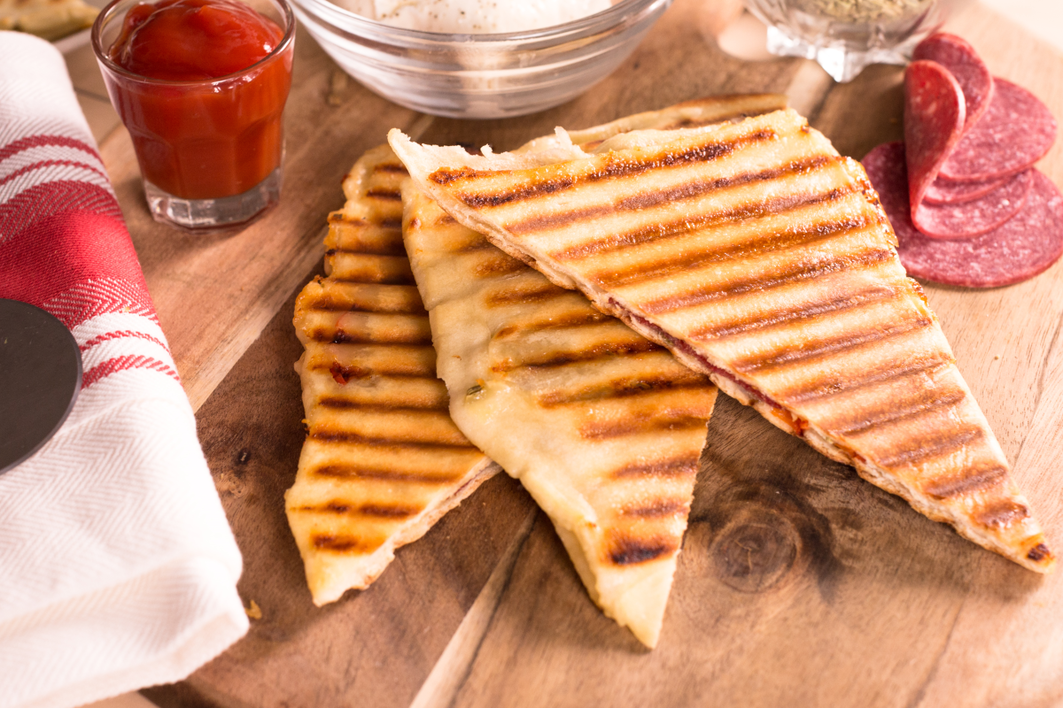 Pizza tosti’s met paprika, salami en mozzarella