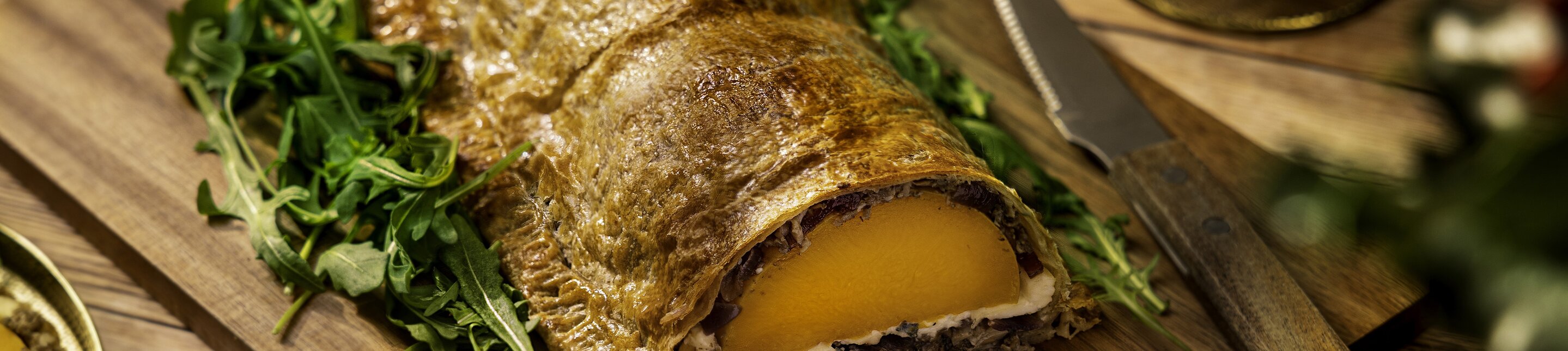 Deze pompoen Wellington van flespompoen, zoete rode ui compote en zachte cambozola is ingepakt in krokant bladerdeeg. Ook voor het kerstdiner is het super makkelijk om een vegetarische optie te maken die net zo lekker een smaakvol is! Voor elke menugang biedt Koopmans vegetarische opties. Zo wordt ook deze kerst extra bijzonder.
