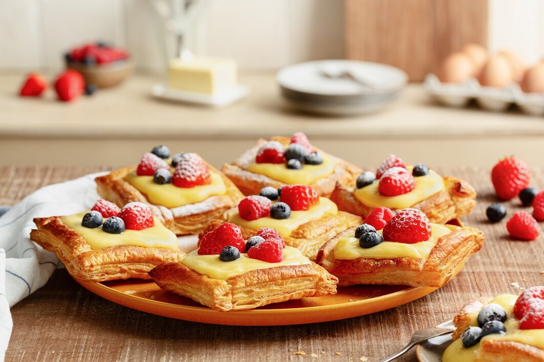 Bak dit simpele maar toch heerlijke bladerdeegrecept in de oven! Je vult de vruchtengebakjes met een heerlijke laag botercrème en vers fruit.
